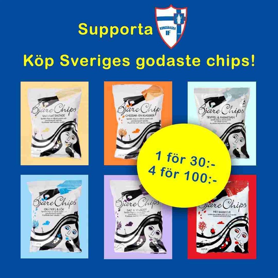 Nu är det dags för årets första säljaktivitet; Bjäre Chips - även känt som Sveriges godaste chips! Förra året var en försäljningssuccé, så vi hoppas kunna toppa det och sälja ännu bättre i år! Detta är den första av årets tre obligatoriska säljaktiviteter - dvs alla måste deltaga! Precis som förra året kommer det vara: 1 påse = 30 kr 4 påsar = 100 kr Förtjänst: 12-16 kr/påse 50% av vinst går till lagkassan 50% av vinst går till föreningen Upplägget är följande: - Varje spelare tar upp beställningar och mailar sammanställning senast 1/3 till claudia_vintr@yahoo.com - Swisha betalning senast 24/3 till 0736167140 och skriv "Chips P13 + spelarnamn". - Chipsen hämtas i klubbstugan i början på april. Mer info meddelas senare. Nu kör vi!! //Hälsn P13 föräldrarepresentanter Claudia & Johanna P-2013 7 feb 2024 12kommentarer